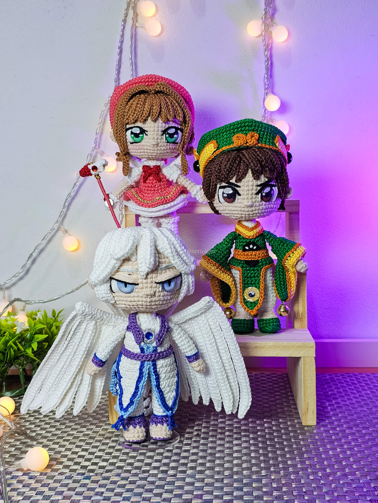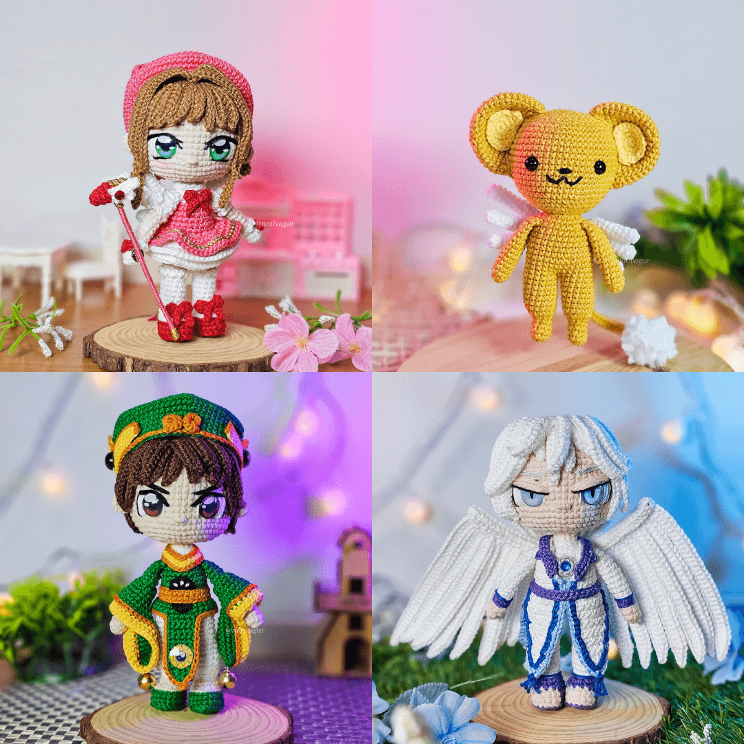Esta é uma receita de amigurumi (amigurumi pattern) contendo o combo dos personagens : Sakura Kinomoto, Syaoran Li, Yue e Kero do anime Sakura Card Captors.